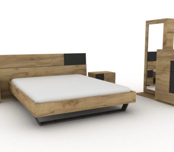 Σετ κρεβατοκαμαρας ελληνικής κατασκευής. Περιλαμβάνει ένα διπλό κρεβάτι, δύο κομοδίνα, τουαλέτα και καθρέφτη. Κατά τις προτιμήσεις σας, μπορείτε να επιλέξετε το κεφαλάρι με κλίση 10°, προσφέροντας μεγαλύτερη άνεση για ανάγνωση ή παρακολούθηση τηλεόρασης.